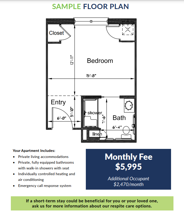 Our monthly fee covers the cost of your loved one’s apartment, all utilities including phone and cable TV, housekeeping, laundry, meals, and care provided by a nurse or nursing assistant. The other services we offer, such as for hearing aids, glasses, dental care, and foot care are available to residents but are not included in the monthly fee. Those services can frequently be covered by health insurance. The beauty salon is not included in the monthly fee, but we can connect you with our stylist so you can learn more about the services they provide, their costs, and scheduling appointments for your loved one.